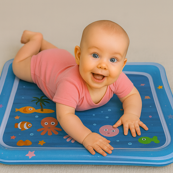 Le Tapis Plouf Magique encourage BéBé à passer du temps sur le ventre, renforçant ainsi les muscles du cou, des épaules et du dos, essentiels pour un développement sain.